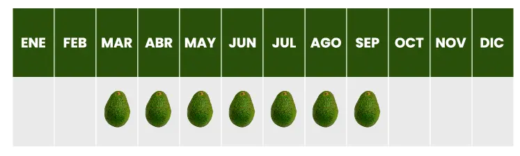 La cosecha de palta peruana se realiza desde marzo hasta septiembre.